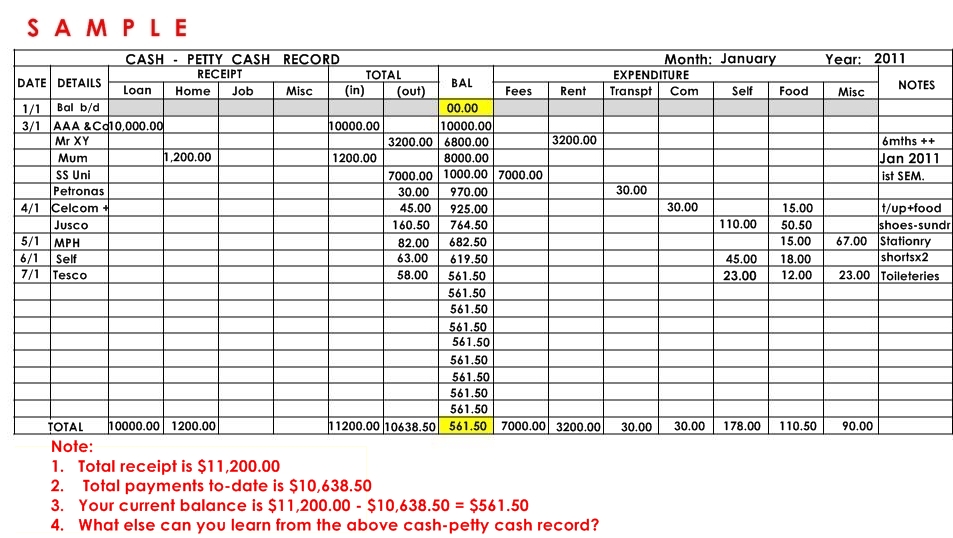 Here are some tips on how to maintain a simple Cash or Petty Cash book